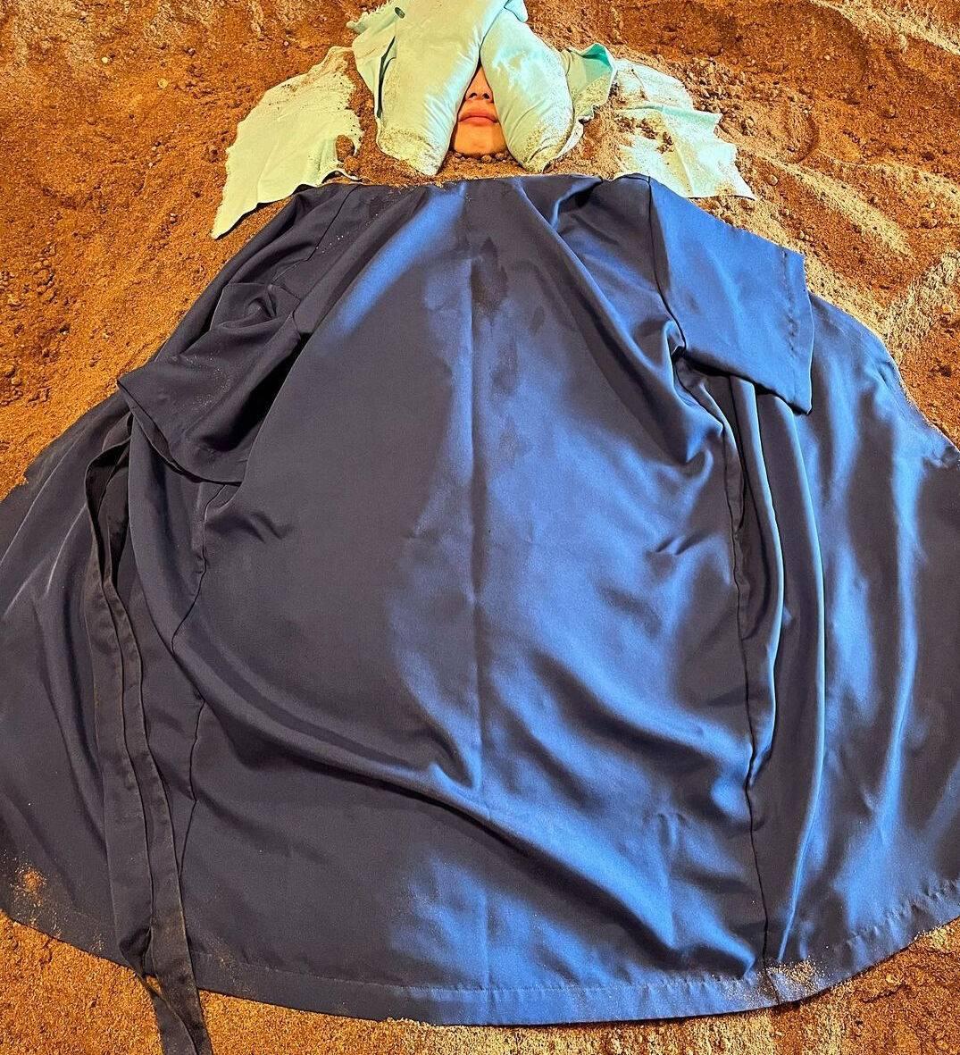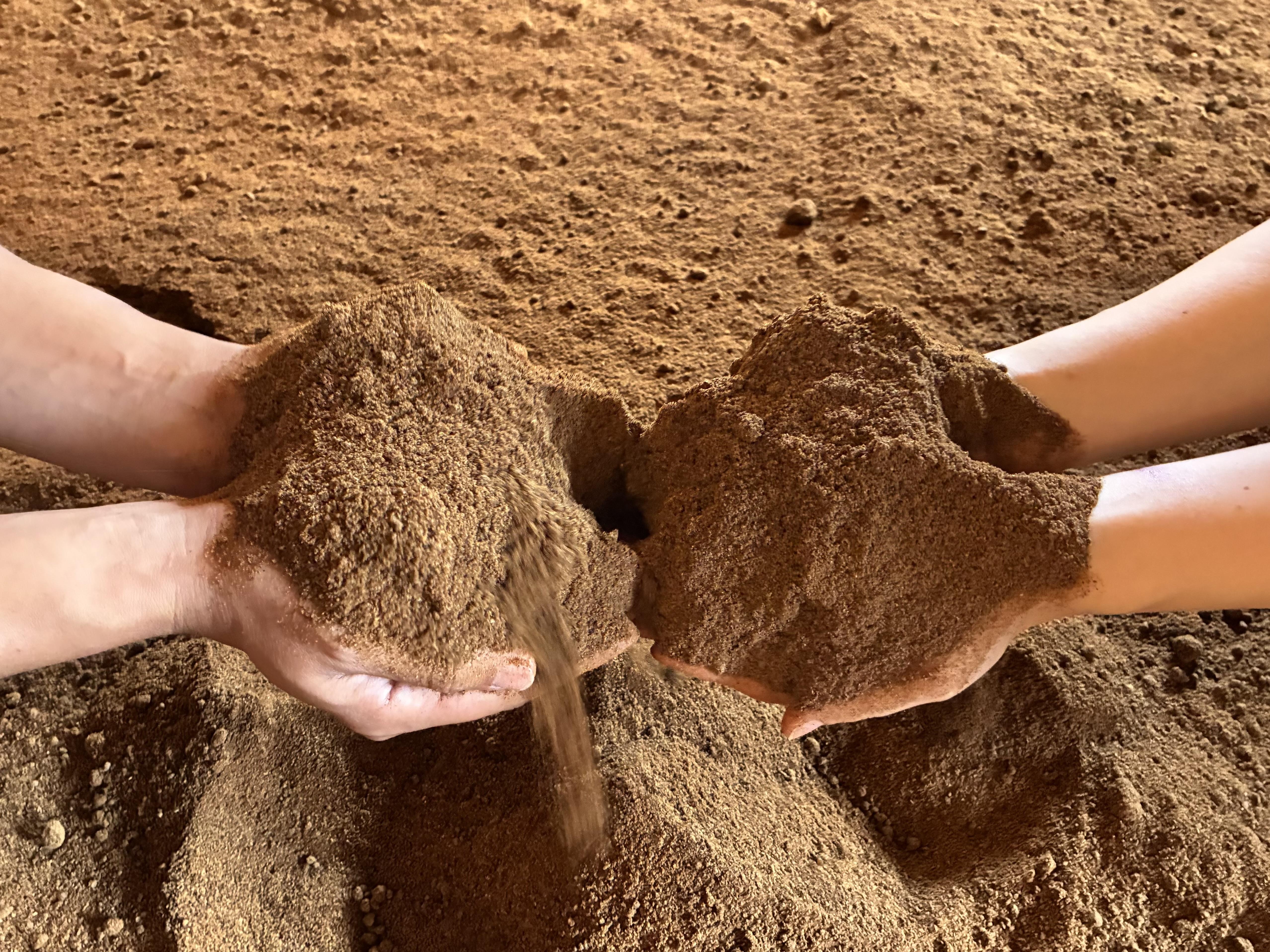 ふかふかに盛られたあたたかい米ぬかの中に、