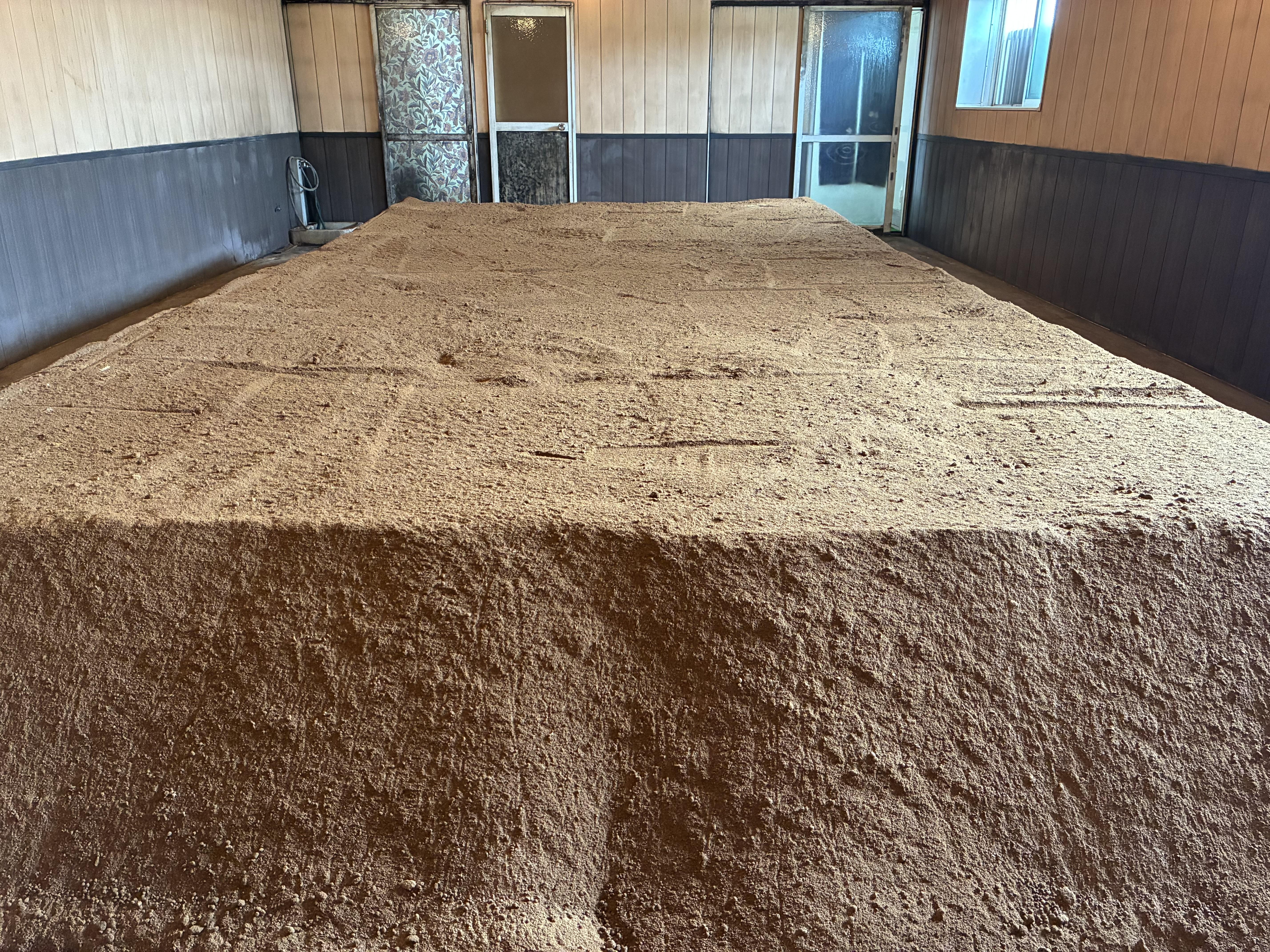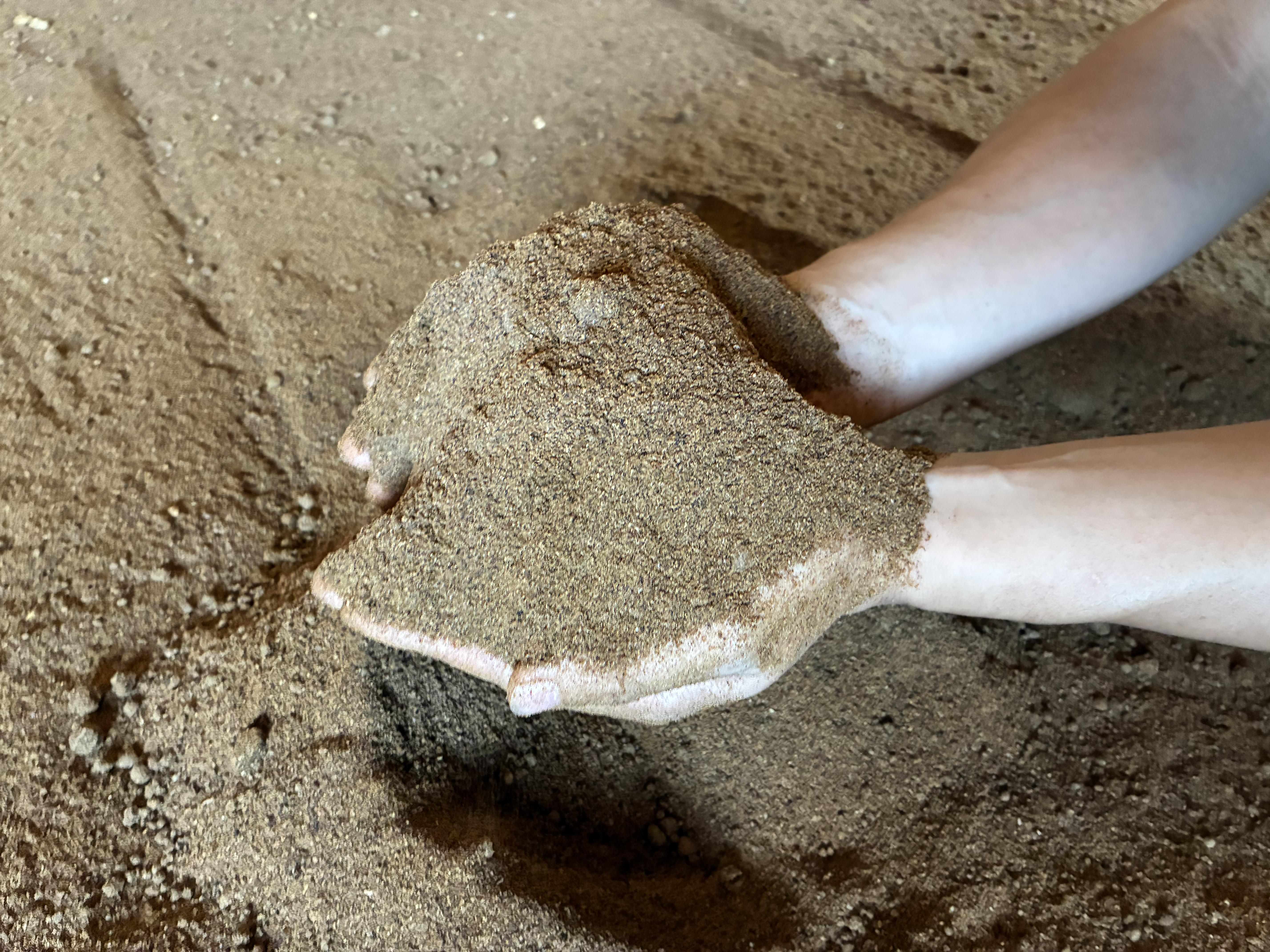 ふかふかに盛られたあたたかい米ぬかの中に、